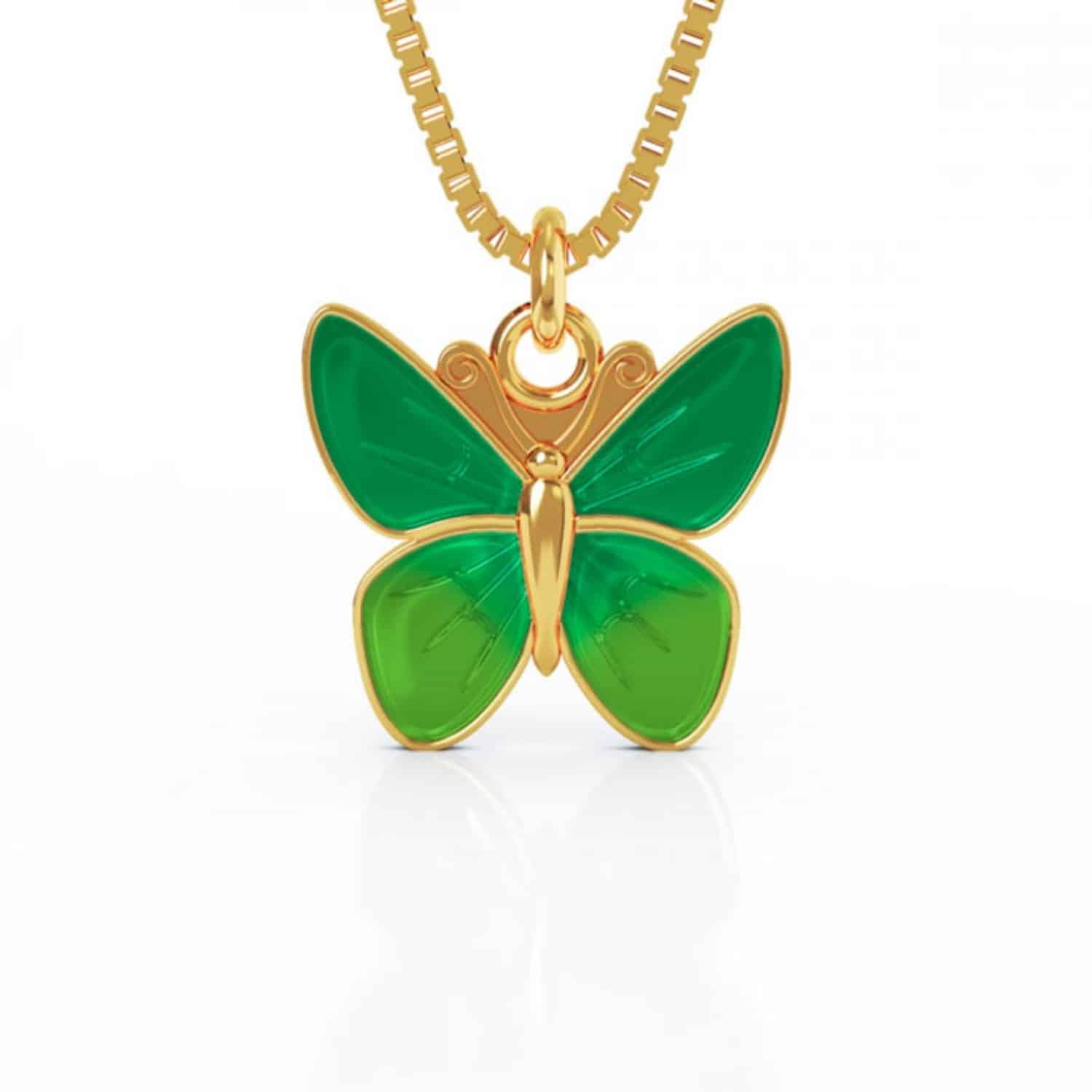 Smuk forgyldt sommerfugl halskæde med glasemalje.